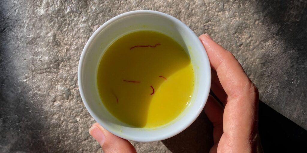 Golden milk is a good start in the morning. It’s good for gut bacteria and has a lot of benefits. Home » Blog » Recipe Alert Golden milk (turmeric milk) June 01, 2025 · Natalia Why Golden milk? Golden milk is a good start in the morning. It’s good for gut bacteria and has a lot of benefits. Golden milk is a traditional Indian drink that people make with turmeric, which gives it a yellow or gold hue. Golden milk may have several health benefit Boosting the immune system Preventing cell damage Improving mood supporting brain function and improving memo Preventing heart disease Possibly reducing the risk of cancer Lowering blood sugar levels Lowering blood sugar levels Boosting the immune system Improving bone health Aiding digestion How to make it? To make golden milk, a person will need: ½ cup non dairy milk, such as coconut or almond milk 1 tsp turmeric 1 tbsp grated fresh ginger or 1/2 tsp ginger powder 1/2 tsp ground cinnamon 1 pinch ground black pepper (optional) 1 tsp honey Star anise cinemon 1 tsp moringa powder I just add moringa and star anise because I have access to it and it’s healthy – you can add what you feel for. Combine all the ingredients in a pot. Next, bring the mixture to the boil, then reduce to a simmer. Let the mixture simmer for about 10 minutes or until it is fragrant. To serve, strain the mixture through a fine strainer to remove the spices. Golden milk will keep in the refrigerator for around 5 days.https://www.medicalnewstoday.com/ Previous ArticleNext Article Featured Articles Abundance Product of the Month 22 Oct 2025 Monthly Updatesㅤㅤㅤㅤㅤㅤㅤㅤ 22 Oct 2025 Lessons from Auroville Farm Assessment 2023 22 Oct 2025 Recipe Alert!ㅤㅤㅤㅤㅤㅤㅤㅤㅤㅤㅤ 22 Sep 2025