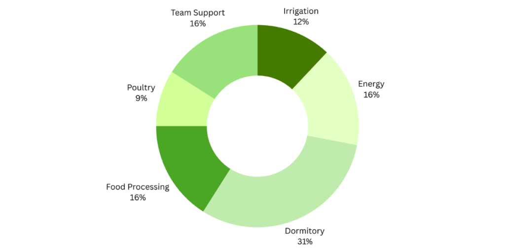 Our Turmeric roots have been sun-dried and turned into flakes that can be easily infused in some hot honey & lemon tea for the changing weather with a pinch of black pepper. Home » Blog » Report on fund utilisation from AVI USA Matching Campaign 2024 Report on fund utilisation from AVI USA Matching Campaign 2024 November 2025 · Anshul Aggarwal During 2024 and 2025, AuroOrchard was fortunate to have been supported with donations raised through AVI USA, AVI Germany, AVI France, AVI Spain and the Abundance Project Coordination Group which coordinates with Stichting de Zaaier in the Netherlands. This support came at a crucial time after the land exchange at the farm helping us rebuild and replace some critical infrastructure as well as invest in expanding our team and diversifying farm activities. This report summarises how the funds were used in 2025, and our plans and aspirations for 2026. Funds raised through AVI USA matching campaign 2024 We were able to raise a total of 8500 USD from December 2024 until November 2025. Break-up for expenses of funds raised through AVI USA from Dec 2024 until Nov 2025 Infrastructure More than half of these funds were utilised to replace crucial infrastructure on the farm that was lost in the land exchange of 2023. This includes: a new electrical connection, entrance cowgate, stabilising new paths, water infrastructure for irrigation and domestic use on the farm. Poultry The next big part of this fund was used to renovate and upgrade our poultry. Over the last three years we have made significant changes to our poultry practice- like changing the breed of the birds and adding maintenance protocols. We have now started upgrading the feeding and drinking systems for the birds. This is a significant expense for all the four coops (around 2000 birds). We were able to make a good start in 2025, but much remains to be done in 2026. Food Processing To diversify farm income and find ways of using abundant produce when it cannot be distributed in Auroville, we started a small food processing activity with a new team on the farm. This needed significant improvement in our community kitchen set up and purchasing some basic equipment and tools. Some of the funds were useful in starting this work. Area Description Elements Money spent in 2025 from AVI USA Campaign Total Donation Money spent in 2025 Budget for AVI USA 2026 Water We continue to expand our micro-irrigation infrastructure as we create new orchards and diversify existing ones. Replace & repair two major water sumps, purchase Irrigation pipes, plumbing fixtures, labour for installation & maintenance ₹ – ₹ 1,02,242.00 ₹ 4,00,000.00 Energy As the farm expands, its electrical infrastructure needs expansion. We are are carefully assessing how we can supplement as much of our need through solar energy. Re-organising existing domestic connections to distributed load, new agriculture connection to replace the one lost in land exchange, better and bigger batteries to use solar energy effectively. ₹ 3,14,013.00 ₹ 3,12,775.00 ₹ 5,00,000.00 Volunteer Dormitory To involve more people in our work, we need spaces where volunteers & newcomers can stay. Dormitory structure, common showers, toilet, kitchen area, plumbing and electricity facilities. ₹ – ₹ – ₹ 10,00,000.00 Food Processing During this year, we significantly expanded our food processing systems. We have a new team looking after this work and we need to buy some new machines and tools to improve and do more. Dehydrator, ₹ 66,146.00 ₹ 3,42,087.00 ₹ 5,00,000.00 Storage shed. Poultry Our poultry activity is over 40 years old. Some of the structures need significant repairs and installation of better systems and technology. As we move forward with an international certification of humane poultry keeping, we need to make some investments in upgrading our systems Free range expansion, Coop renovation-roof, flooring nesting spaces. ₹ 2,54,352.00 ₹ 4,44,539.00 ₹ 3,00,000.00 Team In the past year, we have made a significant attempt in reaching out to our community through stories and updates about the farm. We have also received a few newcomers who are now dedicated to working at the farm. The massive infrastructure replacement and renovation means we need secured funds to support young people who wish to engage with the farm and dedicate their work in Auroville to grow food. Majority of this support came from the farm income from sales of produce. Only a very small part of the donations were used for this. Communication team, volunteer & newcomer support ₹ – ₹ 82,745.00 ₹ 5,00,000.00 Infrastructure ₹ 1,21,981.00 ₹ 3,95,323.00 ₹ – Plantations ₹ – ₹ 4,03,214.00 ₹ – Tools & Machines ₹ – ₹ 34,932.00 ₹ – ㅤ ㅤ TOTAL ₹ 7,56,492.00 ₹ 21,17,857.00 ₹ 32,00,000.00 $ 8,519.05 $ 23,849.74 $ 36,036.04 Expenses from January 1, 2025 until November 15, 2025 To know about our plans for 2026 and help us raise funds, please visit our donation portal here. Previous Article Featured Articles Abundance Product of the Month 22 Oct 2025 Monthly Updatesㅤㅤㅤㅤㅤㅤㅤㅤ 22 Oct 2025 Report on fund utilisation from AVI USA Matching Campaign 2024 17 Nov 2025 Lessons from Auroville Farm Assessment 2023 22 Oct 2025