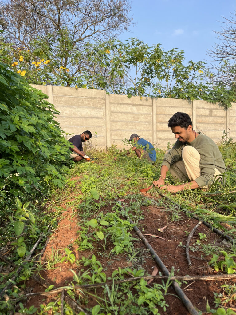 I came to realize that whatever we see around – humans, buildings, plastic, computers all will eventually become the soil. Names, ego’s, stories, achievements, failures – all forgotten. The soil is a reminder of the impermanence of life. Another thing I learnt is that human knowledge about farming is still very little. There’s a vast expanse of knowledge waiting to be uncovered. The farm, with its openness to experimentation, has the potential to be a place of discovery. My first task on the farm was weeding – a repetitive task which could easily feel mundane. However, inspired by the immense beauty around me, every weed felt like a new one, and I found myself enjoying the work.