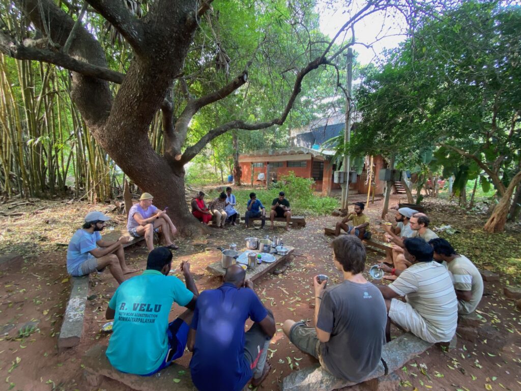 Working peacefully close to nature – observing the ants, birds, bees, decomposition, growth, the flowing wind, the moist earth, your own relation to everything around – you sense that you exist not independently but enmeshed within a grand interconnected something. This energy of Auroorchard naturally inspires a worldview that we are all part of a bigger whole, working together towards a larger purpose. Such a view cultivates a sense of unity & unselfishness, allowing us to see beyond our individual narratives. This energy is felt all around Auroville.