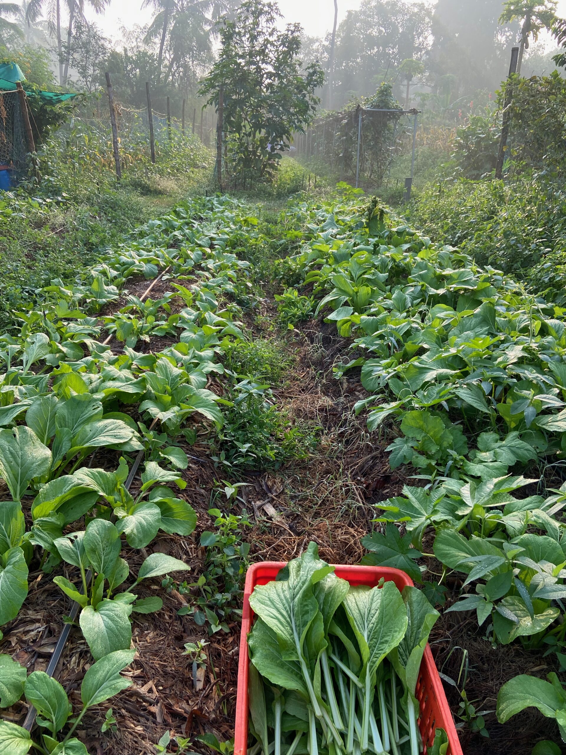 Cool mornings and golden light — perhaps the most generous season in Auroville. We can grow a diversity of crops rarely possible otherwise: greens, roots, beans, herbs, and salads. This is not quite “winter,” but what would be “post-winter” elsewhere — a true spring of renewal and variety.